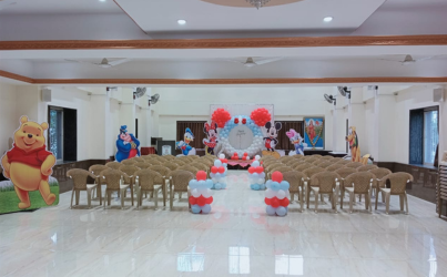 • भोजन/अल्पोपहारासाठी आवश्यक असल्यास टेबल, खुर्च्या, झालर इ. योग्य भाड्याने उपलब्ध होऊ शकतात.